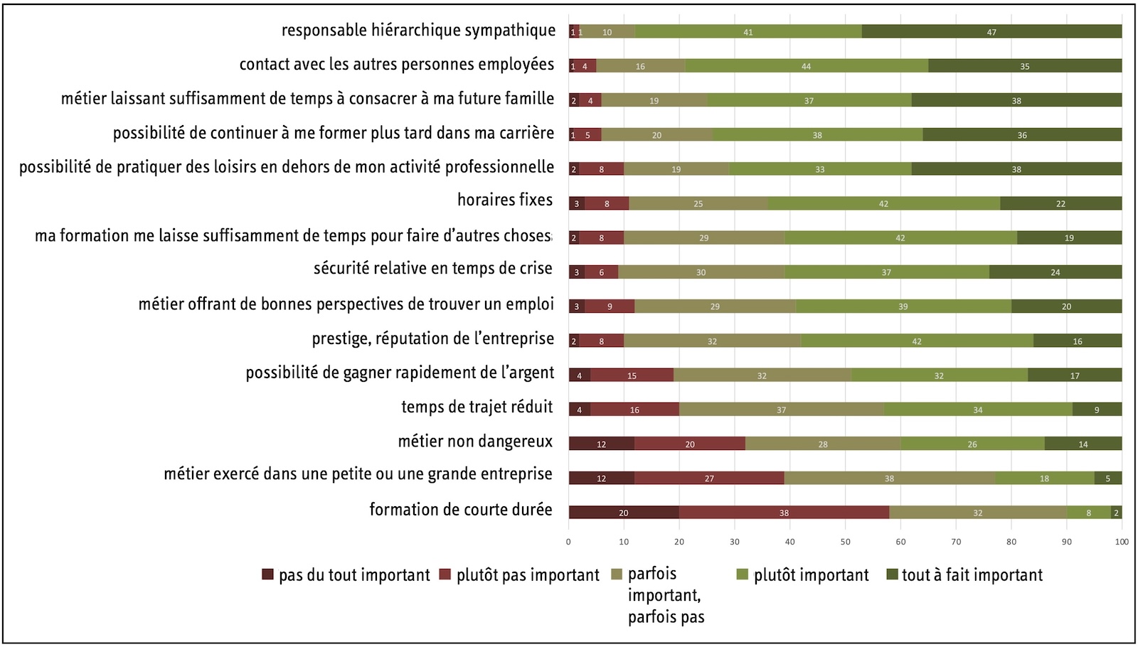 Figure 1. Préférences lors de l’orientation professionnelle selon les critères liés au cadre de travail, en % (arrondi ; N = 2325).